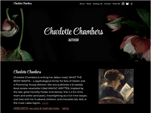 The second thingโI have an author website! Squee! Check me out at charlottechamberswriter.com.